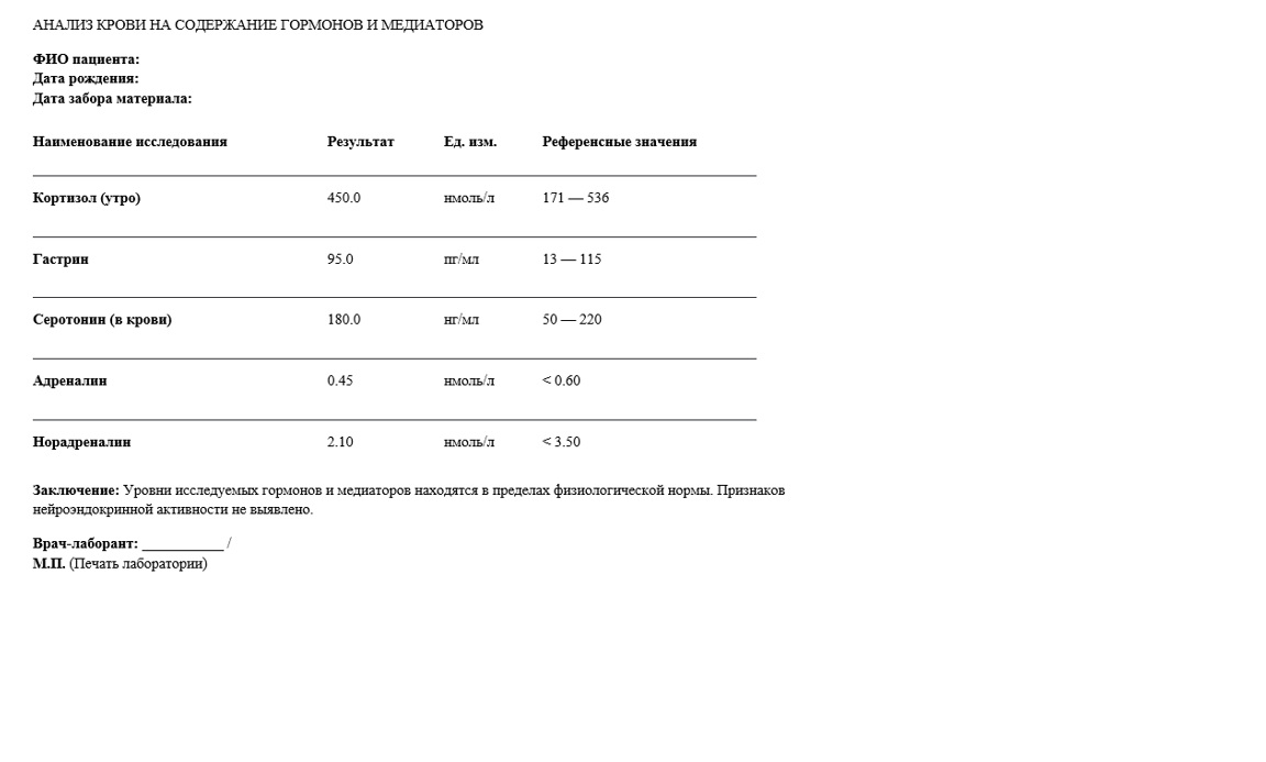Образец анализа на содержание медиаторов и гормонов 235/у