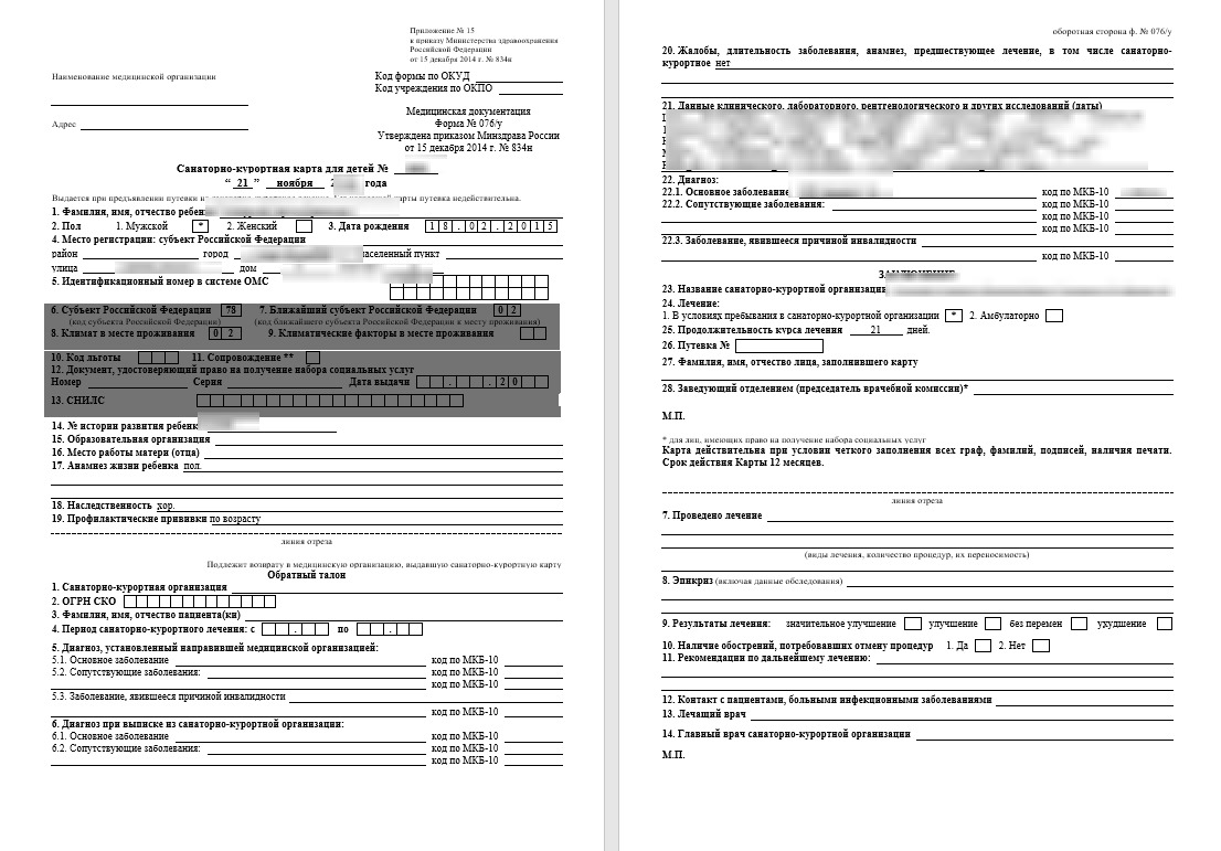 Документ позволяет врачам санатория подобрать безопасные процедуры и лечение с учетом всех заболеваний и противопоказаний ребенка, а также является обязательным условием действия путевки.