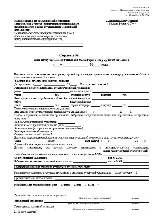 Справка 070/у для получения путевки