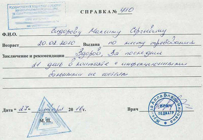 Образец справки от педиатра
